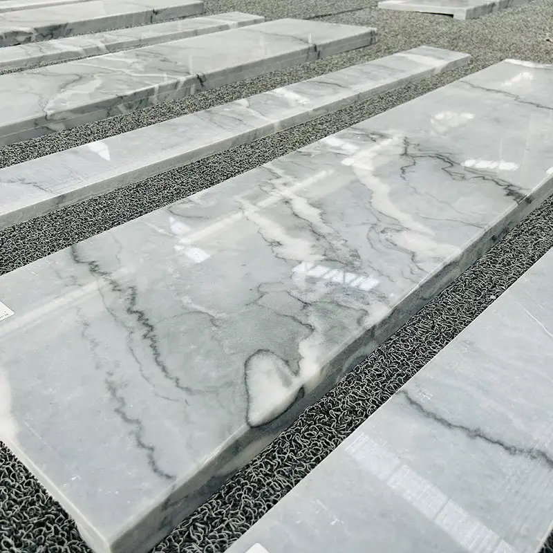 We do everything, from cutting and finishing to packing and shipping. Our factory has everything it needs, and our team has years of experience making beautiful, high-quality products from raw materials, like custom marble stairs design or marble staircase tiles.