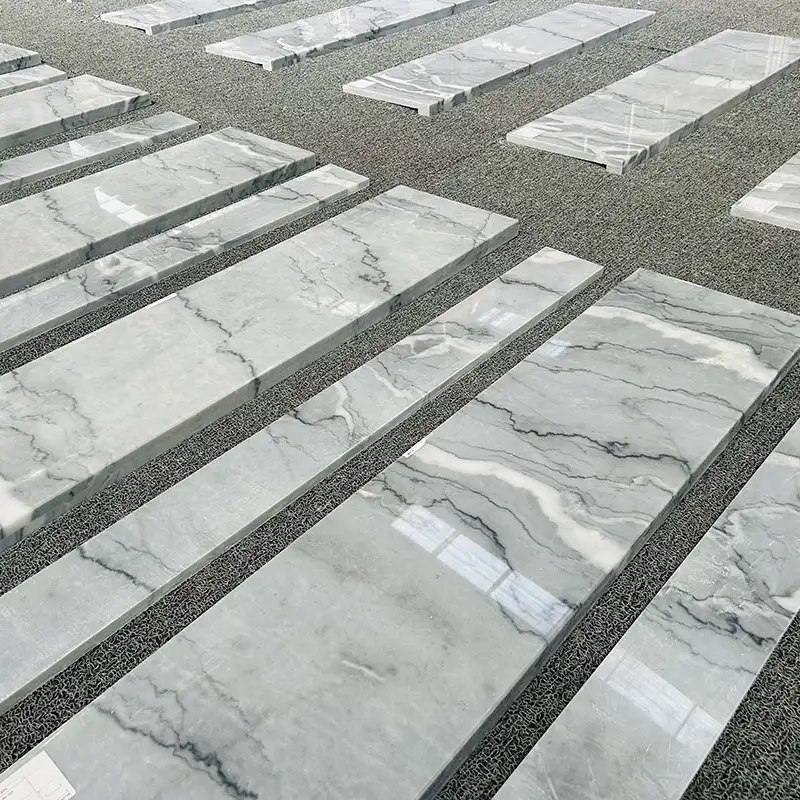 Bruce Grey Marble Step Tiles are a natural stone that adds beauty and functionality to any room. Originated from Chinese quarries, these tiles feature smooth polish and unique natural patterns. They are perfect for marble stairs, luxurious baths, and gray tile flooring. Bruce Grey Marble is a sophisticated and calm ambiance suitable for modern homes, luxury hotels, and European villas.
