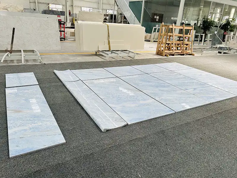 We've been using calcite azul extra marble at Wow Stone for a long time. We know how to get the most out of this material. We do it all in-house, from getting the material and cutting it to polishing it and packaging it. That is improved quality control, more customized options, and a more personal experience.