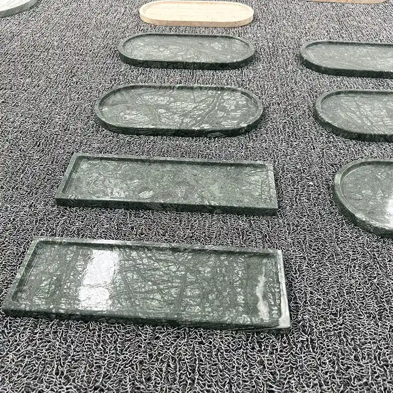 We have seen green marble rectangle trays in kitchens, green marble square trays in offices, and green marble candle trays in yoga studios. They are small, but they do make a difference. They don't yell for attention, but they can handle it.