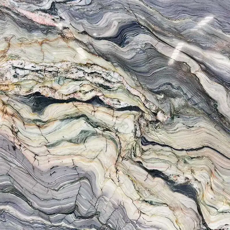 And if you want something with a bit more sheen? Go with polished quartzite countertops. They reflect light beautifully, especially under warm lighting or next to a big window. We’ve seen polished blue quartzite slabs used as feature walls in high-end living rooms—just pair it with a simple crystal light fixture and the effect is stunning.