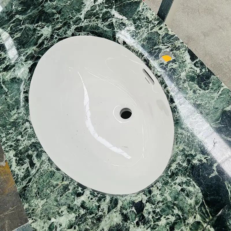 The Verde Rameggiato Marble Vanity Top is more than a countertop; it imports beauty, peace, and sophistication that will never go out of style into your daily routine. This product introduces something special to every room, whether you're building a peaceful retreat in your home or remodeling a luxury hotel bathroom.